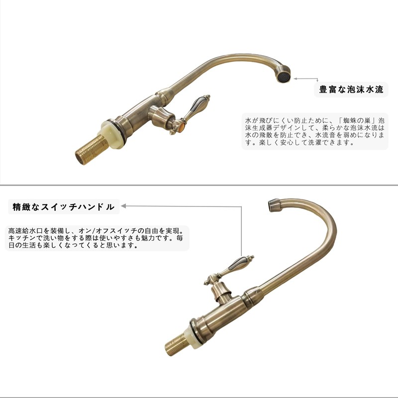 - The antique elegance and retro design make this single faucet a stylish and old-fashioned style that looks great in bathrooms and washrooms. The rugged and stately antique design creates a nostalgic and retro time and space