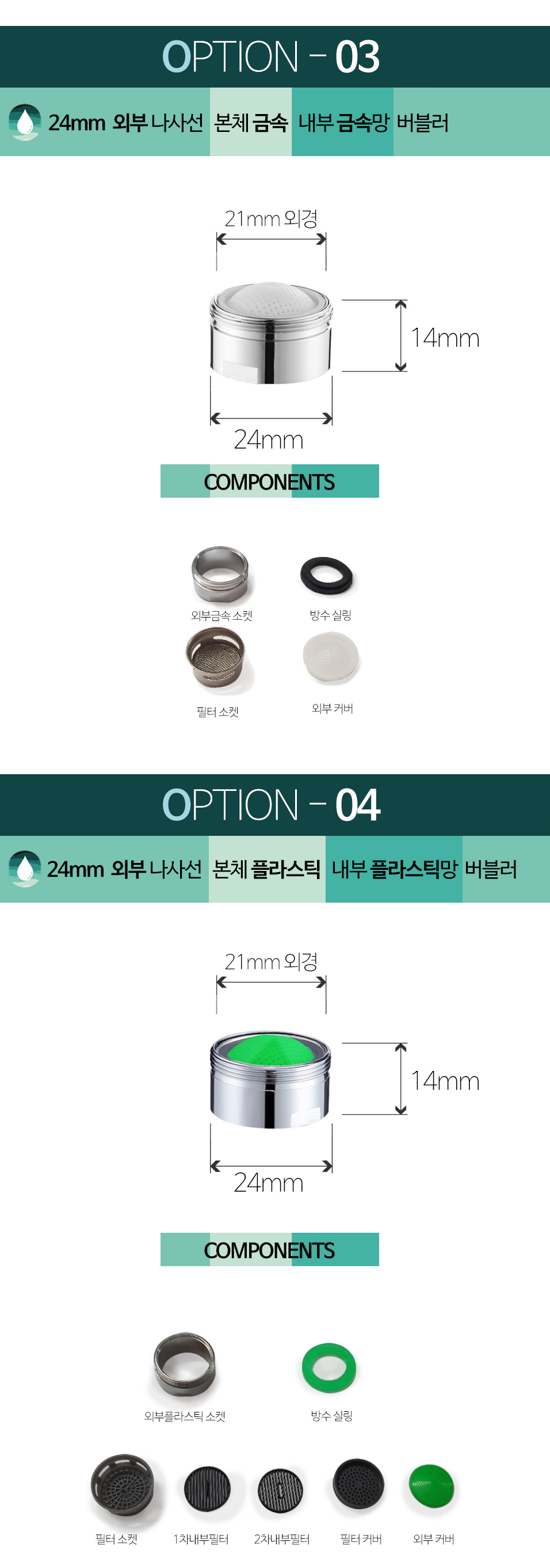 Faucet Nozzle Aerator Bubbler Aerator Water saving tap external 24mm plastic (1222-4) 2ea