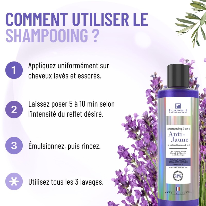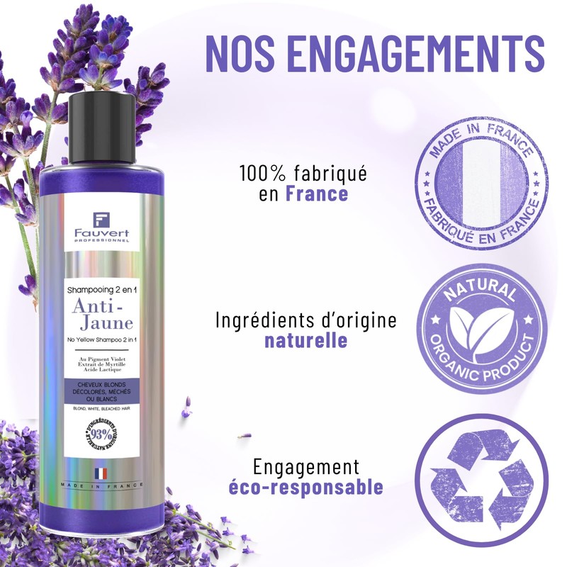 Fauvert Professionnel Shampoo and Care 2-in-1 - Neutralises Yellow Reflections and Moisturises - Blonde, Dyed or Grey Hair - Made in France - 250 ml