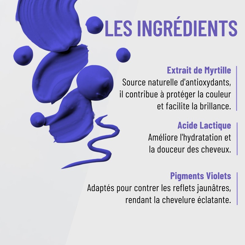 - WITH PURPLE PIGMENT & BLUEBERRY EXTRACT: Formulated with purple pigment and blueberry extract to correct yellow tones and maintain a bright, cool color.