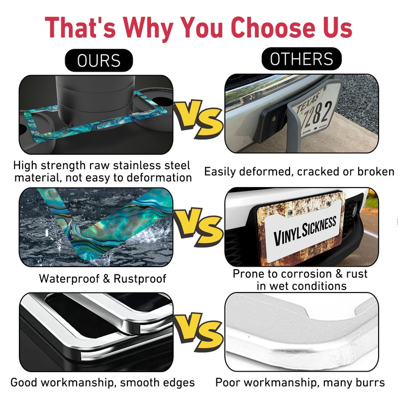- [Excellent material]: Abalone Shell license plate frame offering durability, corrosion resistance, and a sleek appearance, it is capable of providing better protection for your license plate, making it an excellent choice for both style and practicality