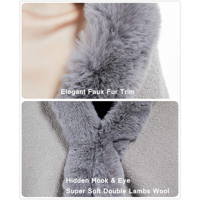 - INCREDIBLY SOFT & KEEP YOU ENOUGH WARM --- Never Shed!!!The elegant luxurious shawl is made of super soft double lambs wool blend with faux fur trim. The bottom fur trim consists of a bunch of small fur, which makes the bridal wrap look more glamorous and special. Available in Black,ivory,gray,camel,yellow,pink,red,burgundy,brown.