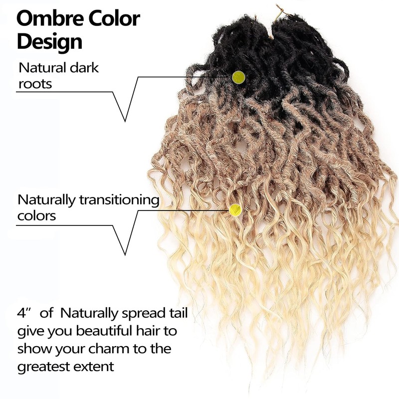 - Ombre Color Goddess Locs Crochet Hair:1B#,T/30#,T/27#,T/33#,T/27/613#,T/BUG#,T/Orange#,T/Bule#,T/Purple#,A variety of colors are available. You can choose different colors for yourself on different occasions to show your charm in many aspects.