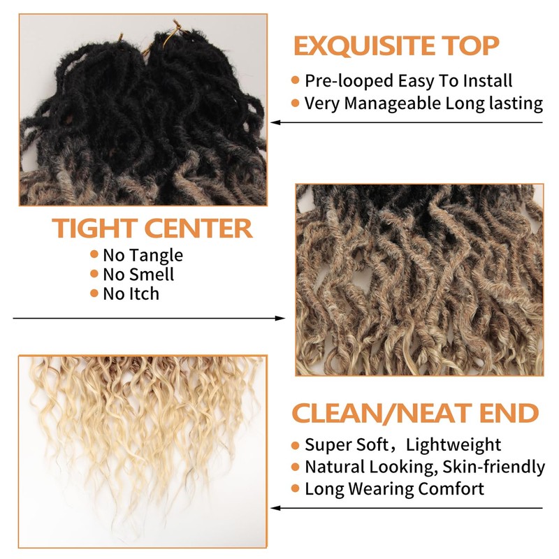 - Soft Locs:Flexible Goddess Locs Crochet Hair For Black Women, Natural Looking Crochet Locs With Curly Ends, Bouncy, Cute, Fashionable But Daily Crochet Hair, Water Friendly, Skin Friendly, Easily Customize Your Vacation Look And New Maintenance Style, Make You Shiny In The Crowd.