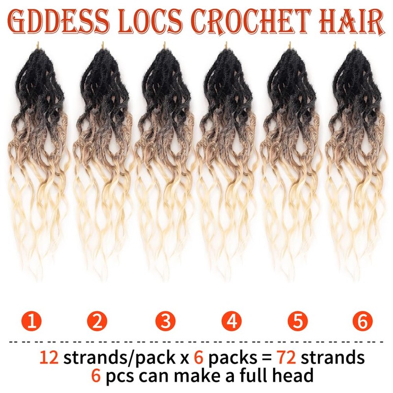 - 6 Packs 72 Strands Can Be Make Full Head:One pack is all you need for a full-head(6 packs of 18 inches, Each pack comes with free accessory.River Locs Goddess Crochet Braiding Hair.Beautiful and Fashion, New Style, Really Cute, Beautiful Curls ends, Feeling Like Goddess, Looking Like a Queen .