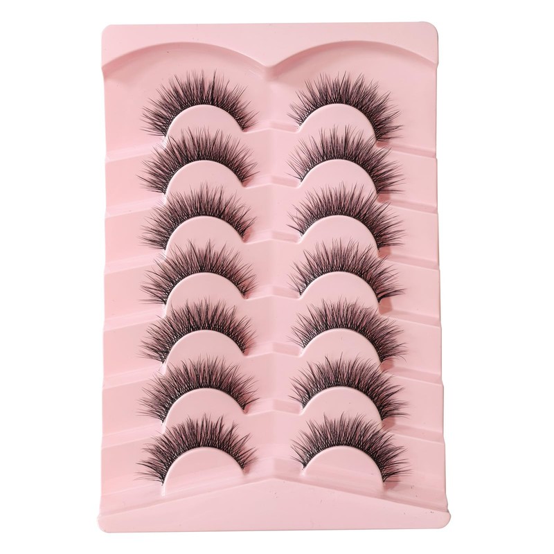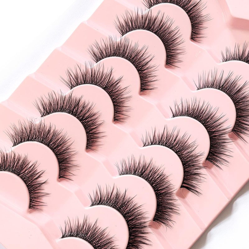 Faux Mink Eyelashes 8-10mm with Clear Band, 100% Handcrafted, Fluffy Voluminous Cat - Eye Lashes, 7 Pairs Pack(XS082)