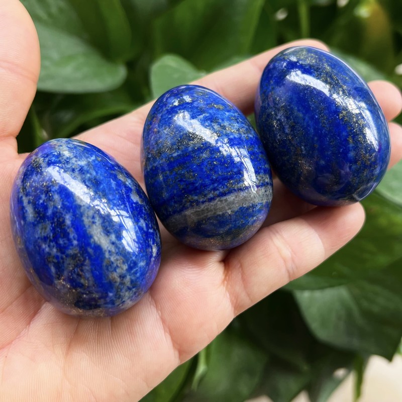 favoramulet Polished Stone Egg for Easter Day, Palm/Pocket/Worry Enegry Healing Crystal Display Sphere Figurine Fengshui, Lapis Lazuli 1.8" x 1.3"