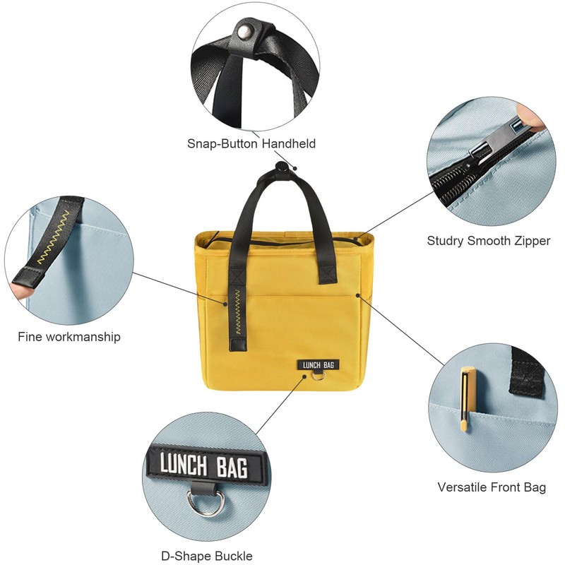 - 【Large Capacity】23 x 14 x 22 cm / 9 x 5.5 x 8.7 inches, This Lunch box bag provides enough space, perfectly fit your lunch box,snacks and fruit, This lunch bag is simple personality modern and accompany you to all kinds of places.Meet all your work and travel needs