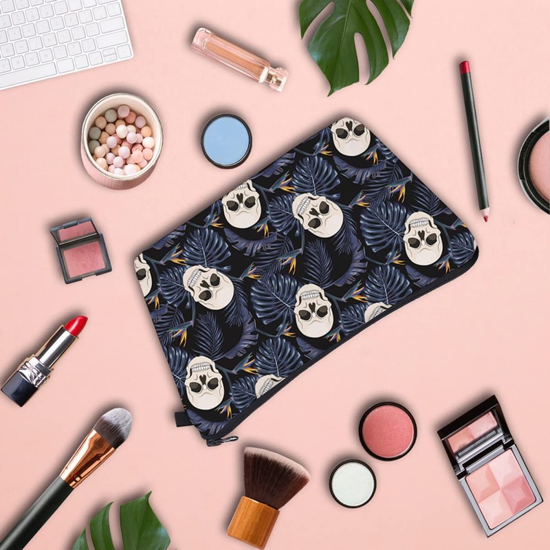 FAVORTALK Makeup Bag Travel Make up Organiser Bag Storage Vanity Case Makeup Bags for Women Makeup Box Cosmetic Bags with Fashion Skull Pattern -B1164