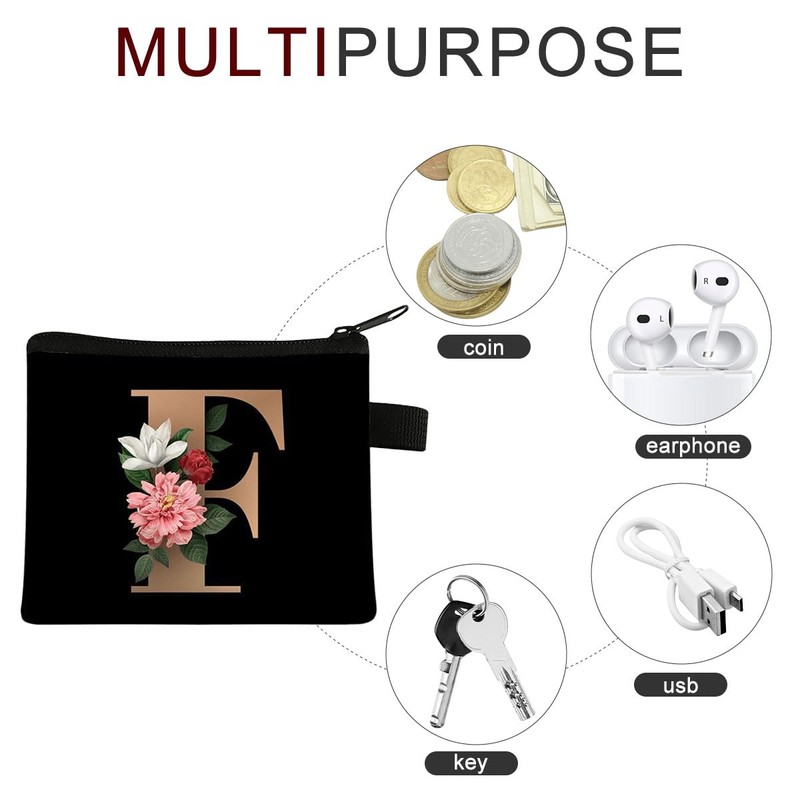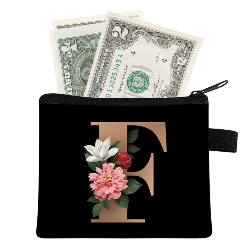 FAVORTALK Small Coin Purse with Zip Mini Coin Purses Boy Girl Floral Coin Bags Soft Velvet Coin Wallets with Zipper Initial Change Pocket for Women - 13608