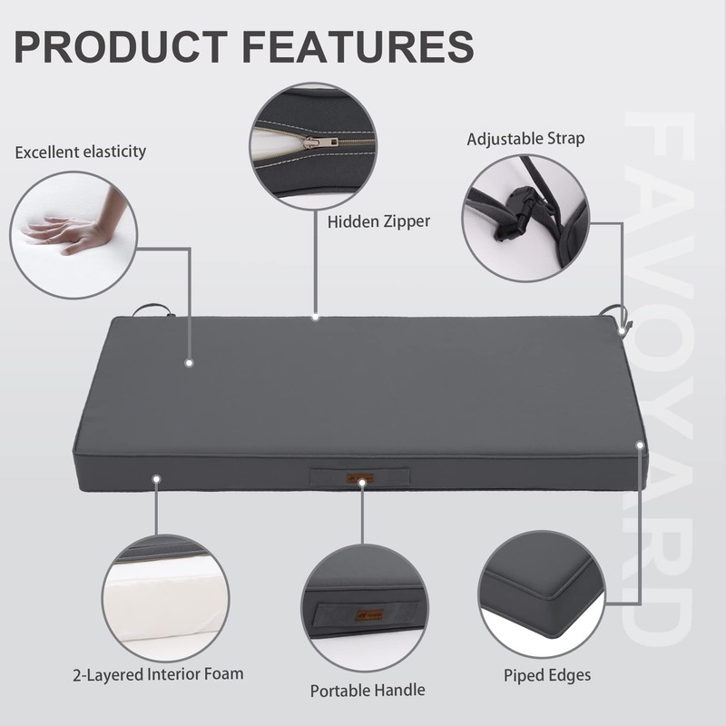 - Waterproof Cover - The Favoyard outdoor furniture cushions has a TPU coated cover with hidden zipper design, all-round waterproof to keep rain out and protect the inside foam. Also, these outdoor bench cushions are super easy to maintain and clean, just wash the cover by washing machine.