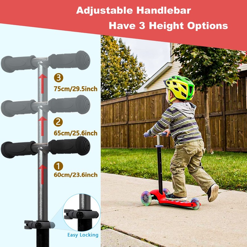 - GROWS WITH YOUR KID: ADJUSTABLE 3-POSITION HANDLE BAR allows the scooter to grow with your child, perfect for 36 months+