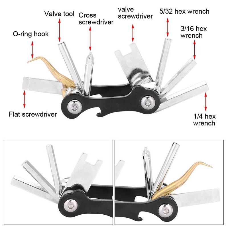Fayelume Scuba Diving Multitool, 420 Stainless Steel 8 in 1 Mini Folding Allen Wrench Set, Scuba Accessories for Repairing Diver Equipment