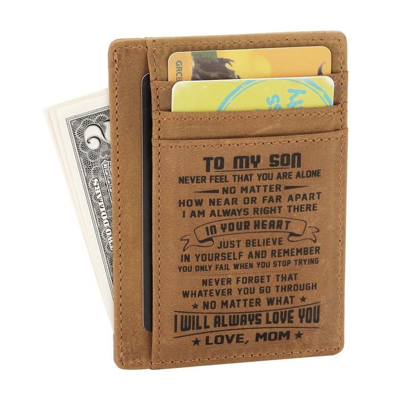 FAYERXL Minimalist Wallets Gift for son daughter from Mom Dad Slim Wallet RFID Front Pocket Wallet (Mom to my son)