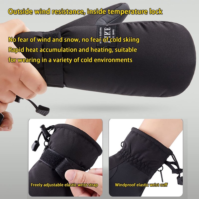 FAYHIJUN Winter Mittens for Women Ski Gloves Winter Gloves Waterproof Cycling Gloves Windproof Thermal Gloves Warm Sports such as Running Cycling (M, Black)