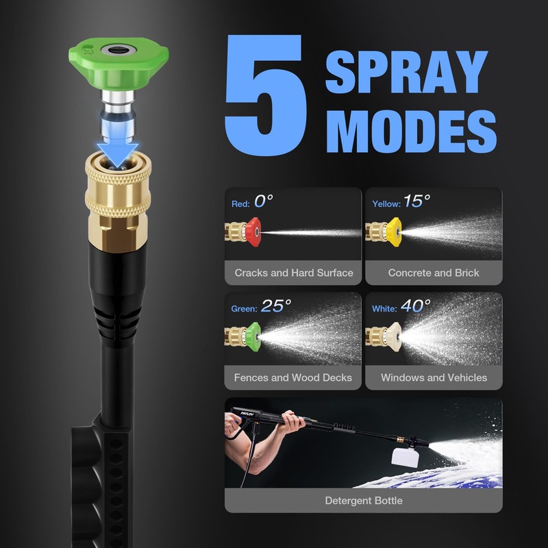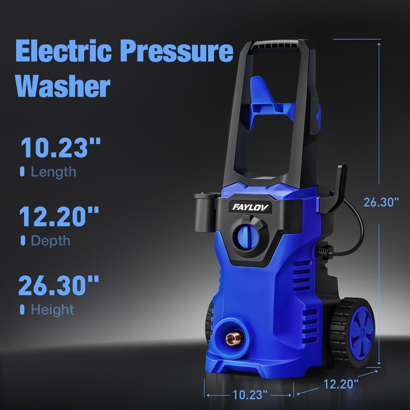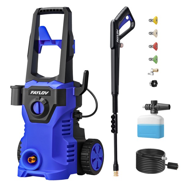 FAYLOV Electric Pressure Washer, 1.25 GPM Power Washer with 4 Quick-Connect Nozzles & 360° Rotating Tip, Portable Pressure Cleaning Machine with Foam Cannon for Car, Driveways, Patios, Home Cleaning