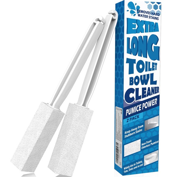 2 Pack Pumice Stone for Toilet Cleaning, Extra Long Handle for Removing Bowl Ring, Pool, Bathroom, Toilet Brush (White)