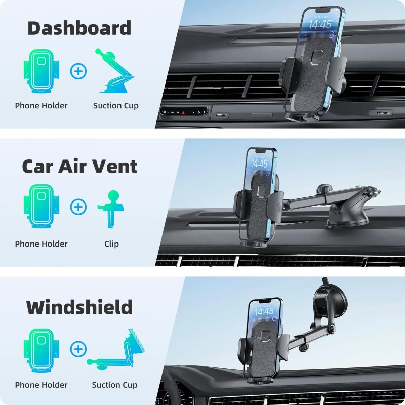 3 in 1 Car Phone Holder Mount for Dashboard Windshield Air Vent Universal Fit