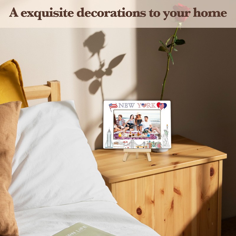 Fbitey New York Picture Frame, New York Themed Gifts, New York Souvenirs Picture Frame, Honeymoon Vacation, Wedding Gifts, Wood 4x6 Photo Frame for Desk Display-A10