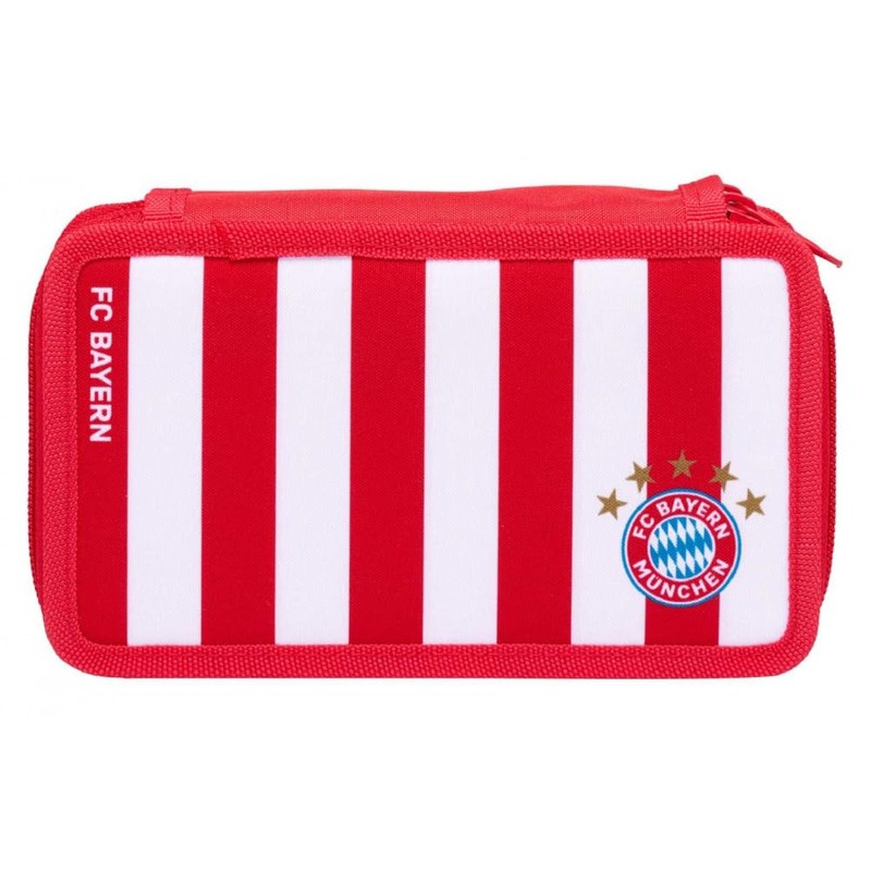 FC Bayern München FCB Double Pencil Case with Stripes Design Red / White, red, white, Sporty