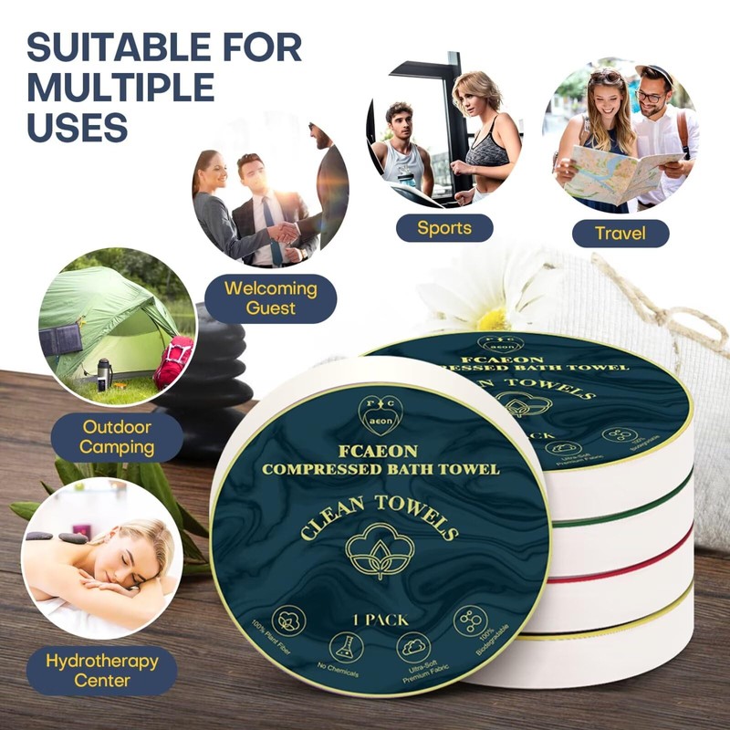 - 【Skin Friendly】- FCaeon compressed bath towel is fragrance-free and alcohol-free and hypoallergenic, disposable face cloths have no residue on the skin, NO contain unpleasant chemical smells and unnecessary additives are softer, and thicker than other face cloths is suitable for all skin types, especially sensitive skin.