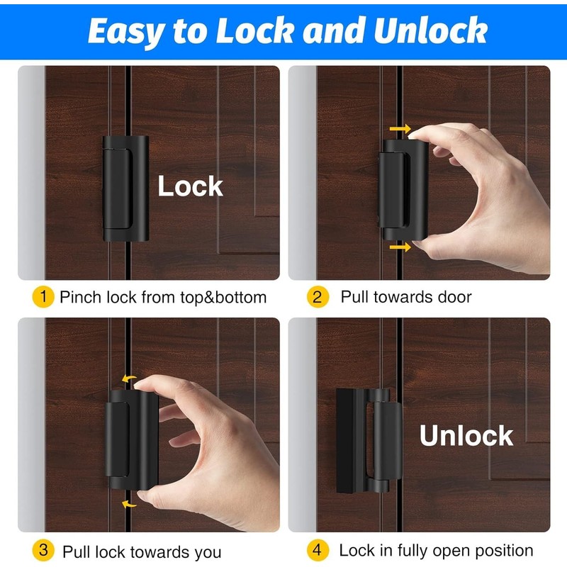 - User-Friendly Design: The door reinforcement lock is easy to use, providing convenience and peace of mind. It can be locked and unlocked effortlessly, requiring no additional tools for operation. With a bit of practice, you can quickly and efficiently secure your door. This lock not only prevents break-ins but also serves as a childproofing measure, offering a versatile solution for home security.