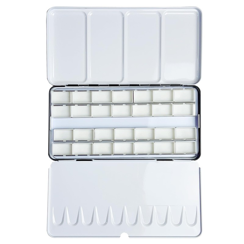 - Empty Watercolor Palette Size: 8.9 x 4.4 x 0.8 inches (22.5x11x2cm) with 28pcs watercolor full pans. Suit for both home/studio painting and outdoor travelling watercolorpainting,oil painting.