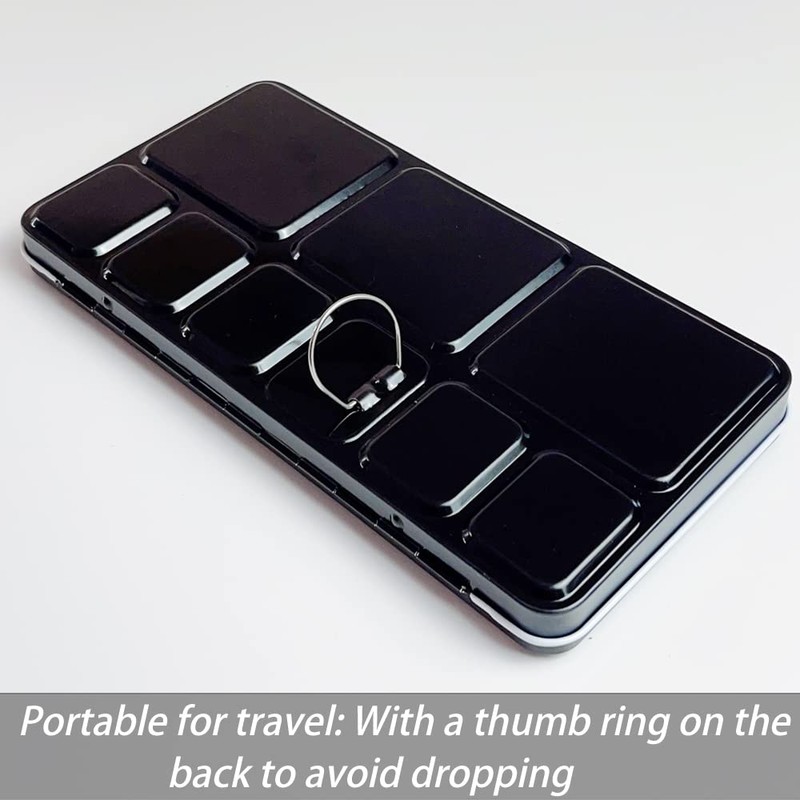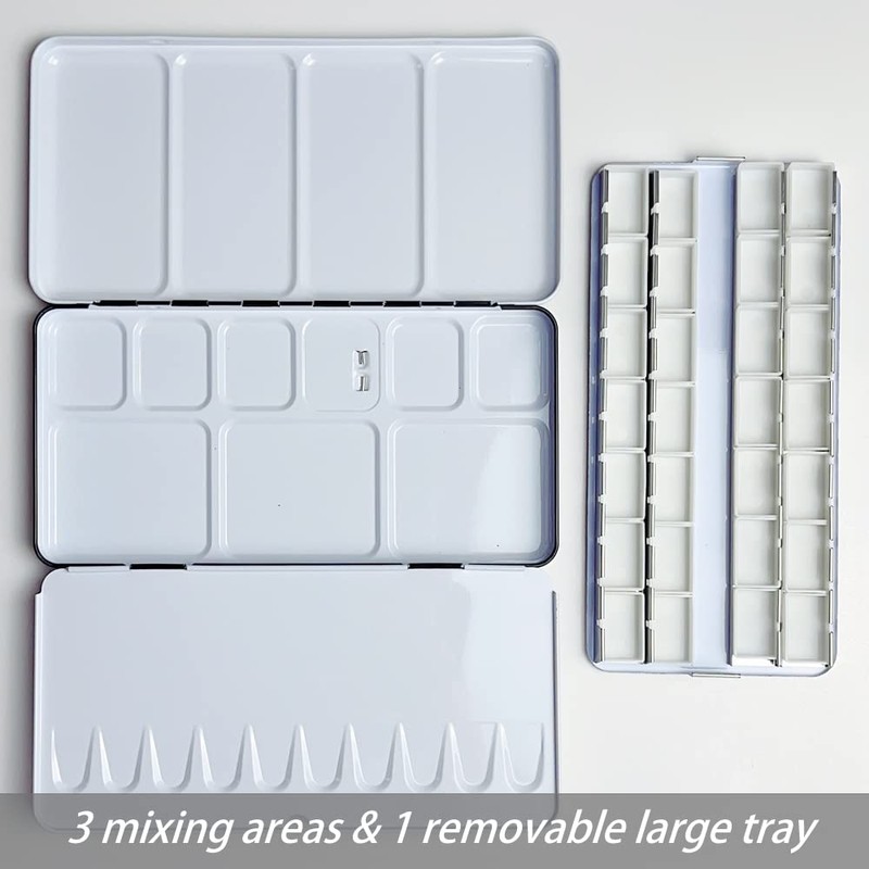 - High Quality Metal Palette: The watercolor palette edges are rolled there is nothing sharp. It has 2 big fold out mixing areas and 1 extra mixing space if you remove the tray.