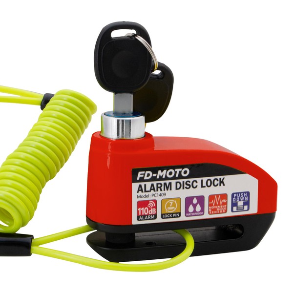 FD-MOTO Alarm Disc Lock & Reminder Cable Black/Red