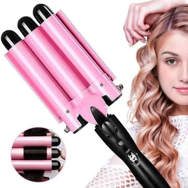 FD Waflera Triple Rizadora De Cabello Ondas Playeras Color Rosa