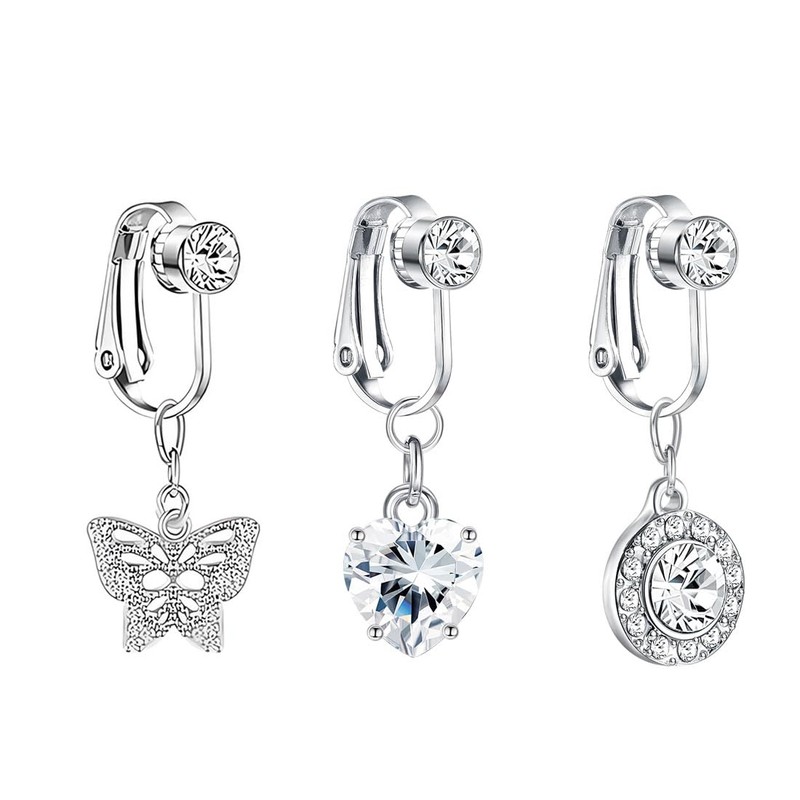 FDCGAS Fake Belly Button Piercing - 3 Pieces Fake Belly Button Piercing for Women, Fake Piercing, Women Belly Button Piercing, Silver Belly Button Piercing, Butterfly Heart Moon Clip On Belly Button