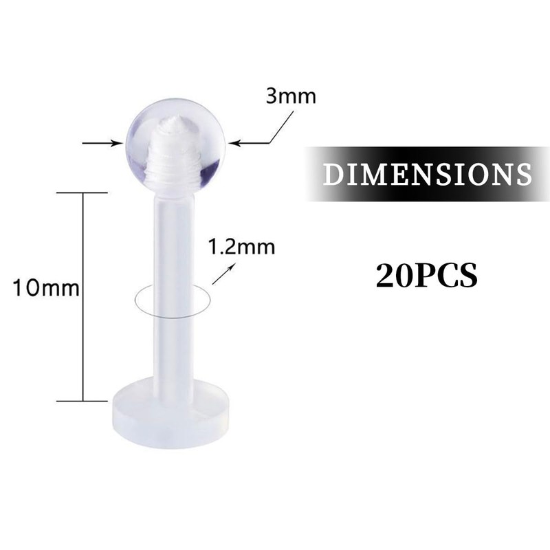 Set offer: there are a total of 20 transparent lip piercing plugs, the set is exquisite and the price is reasonable.