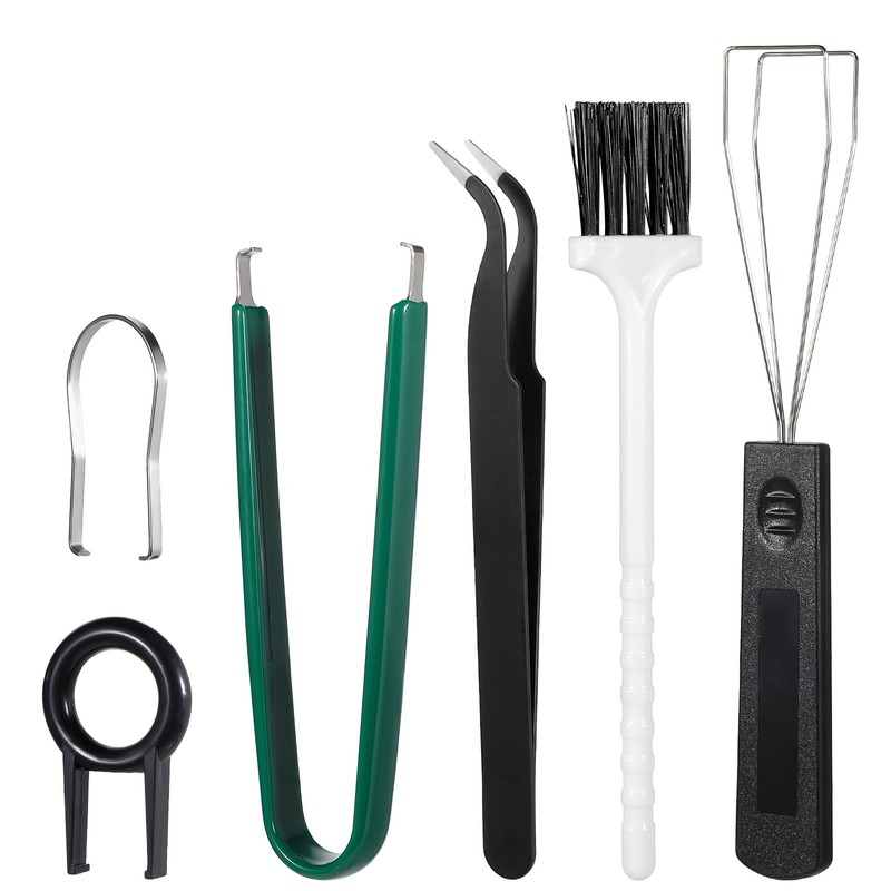 - COMPREHENSIVE CLEANING KIT: This set includes 6 essential keyboard cleaning tools - two styles of keycap pullers, two switch pullers, a pair of tweezers, and a cleaning brush. The Keyboard Puller Set is easily accessible for thorough cleaning
