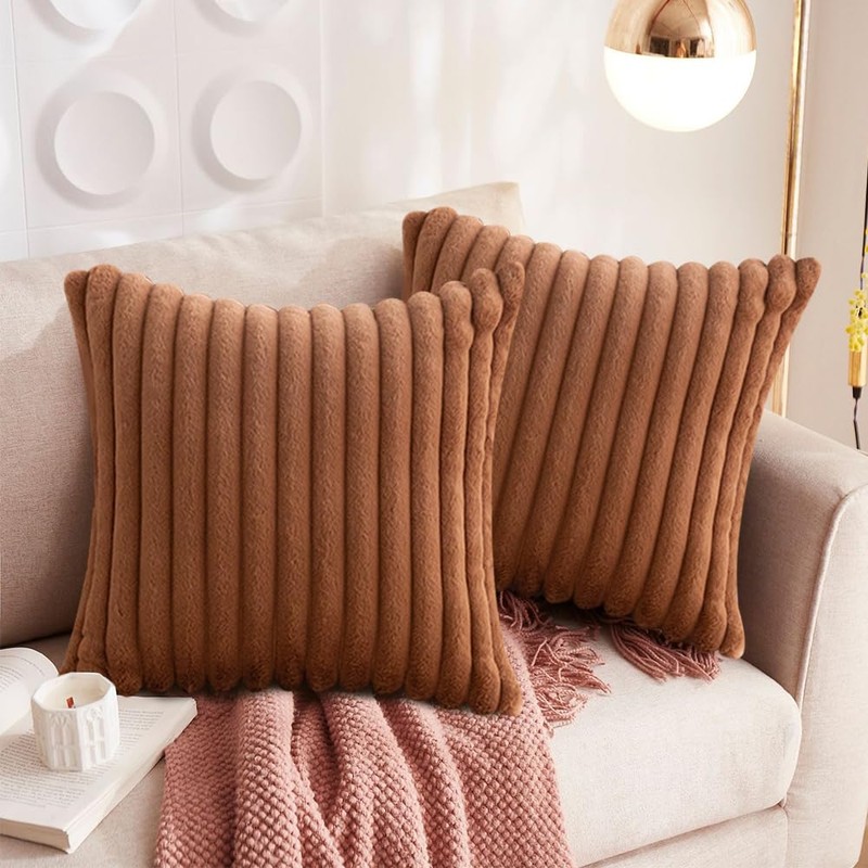 FDEETY Set of 2 Cushion Covers, Soft Artificial Fur, Decorative Cushion Cover, Sofa Decorative Cushion Covers, Decorative Cushion Cover Set for Couch, Bedroom, Home, Car, 45 x 45 cm, Brown