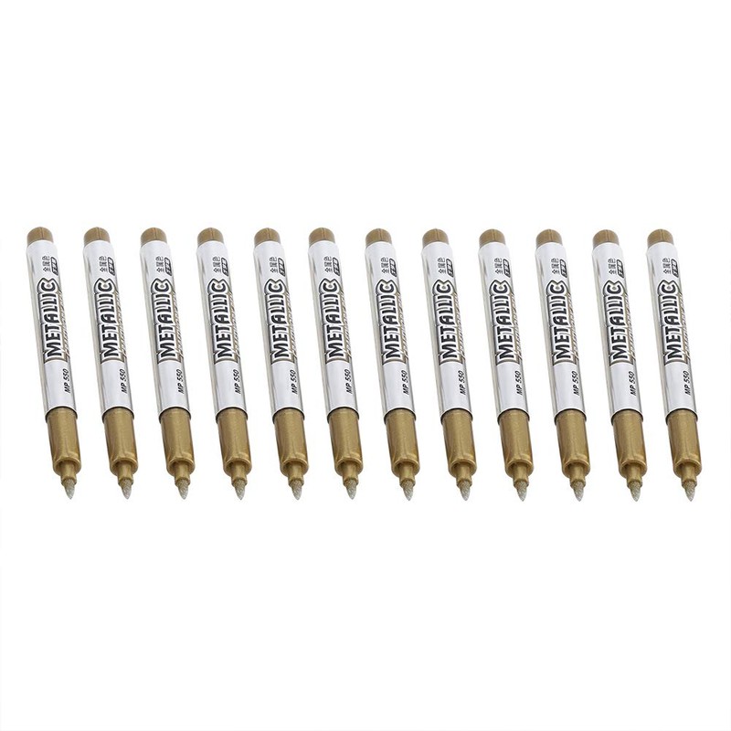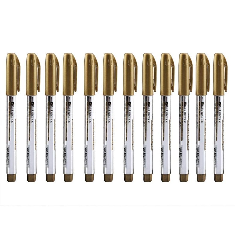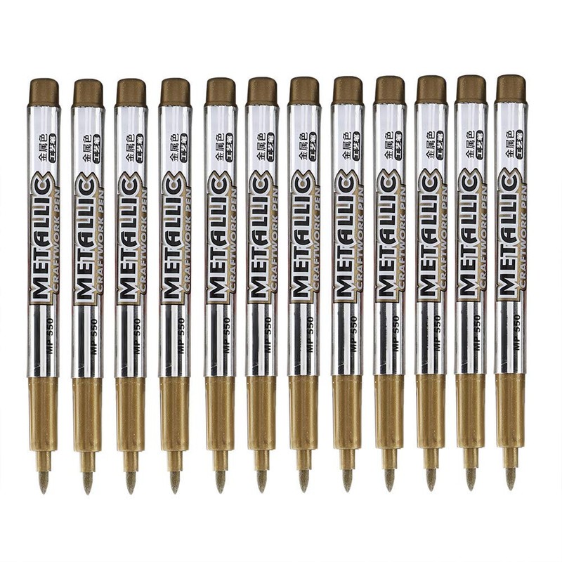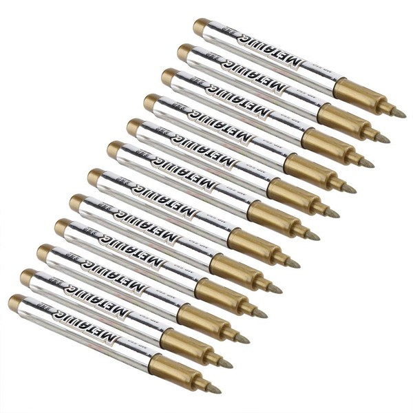 Fdit 12 Stück Acrylfarbe-Set, detaillierte, wasserdichte Metallic-Farbe zum Basteln in Gold und Silber Lackmarker für Reifen, Metall-Oberflächen, CD-Glas goldfarben