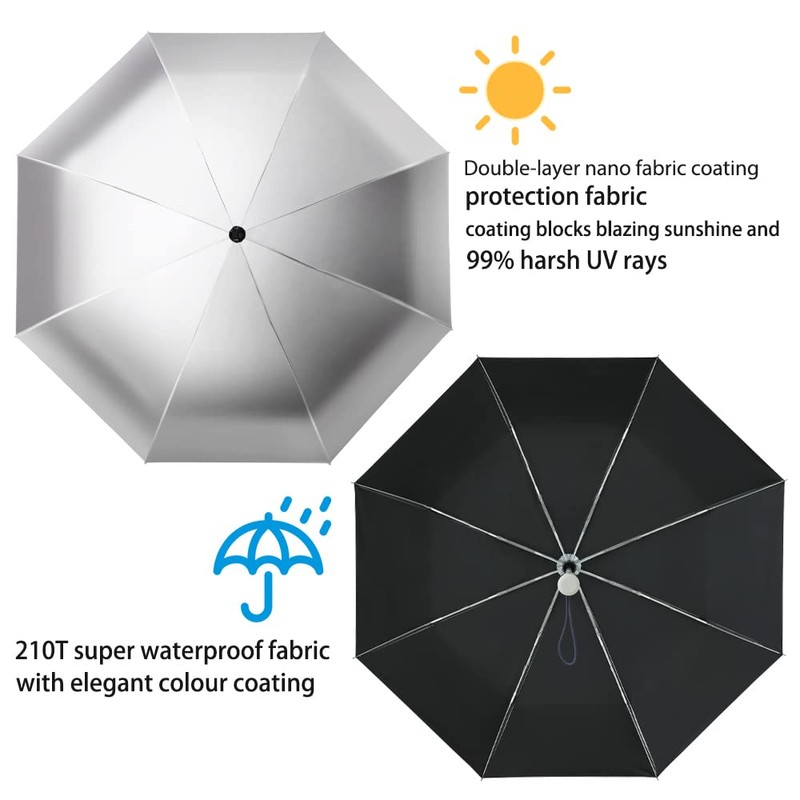 FDJASGY Silver Coating Layer Fabric Blocking UV 99.9% Sun Umbrella Compact Folding Travel Umbrella Automatic Folding Windproof Umbrellas For Men and Women (Black)