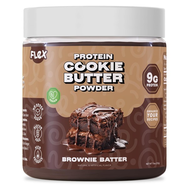 Flex Vegan Protein Cookie Butter Powder - Brownie Batter | Dairy-Free, Keto-Friendly, Low Carb, Sugar-Free, Gluten-Free | Easy to Mix, Bake and Spread | 8.1oz