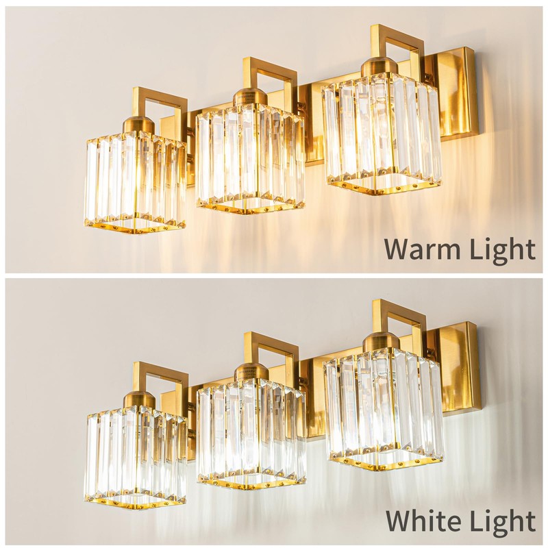 - 【High Quality Manufacturing】 The shade of the vanity light is made of clear K9 crystal, and the base and arm are made of brushed gold finish, resistant to corrosion and moisture, sturdy and durable. Can create a beautiful lighting effect, bathroom vanity lighting simple and luxurious design shows your taste.