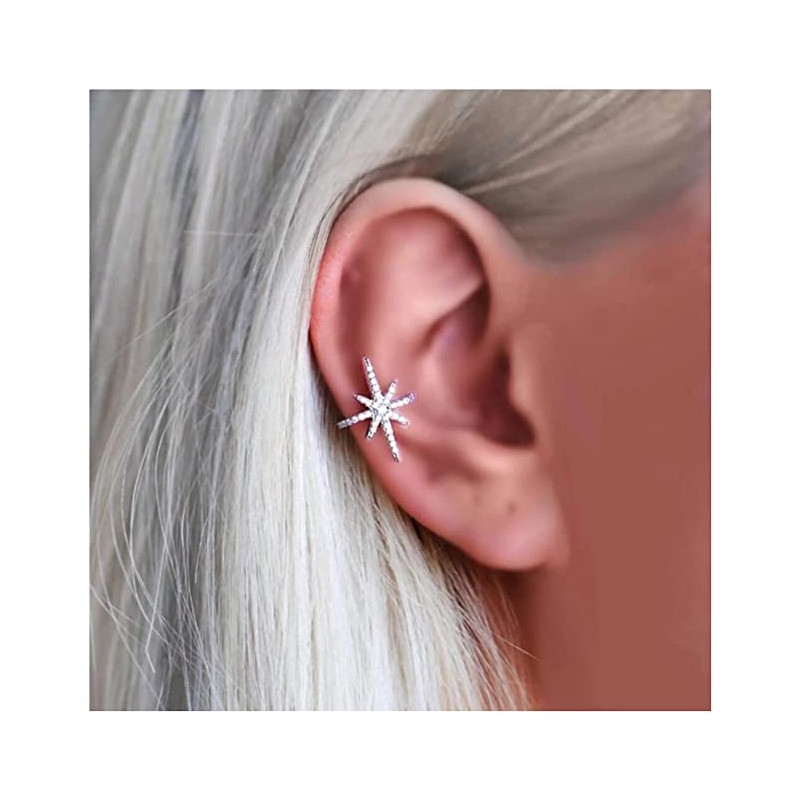 - 【High Quality】Silver Cz Northstar Earrings Cuff made of high quality alloy,lightweight and comfortable to wear.