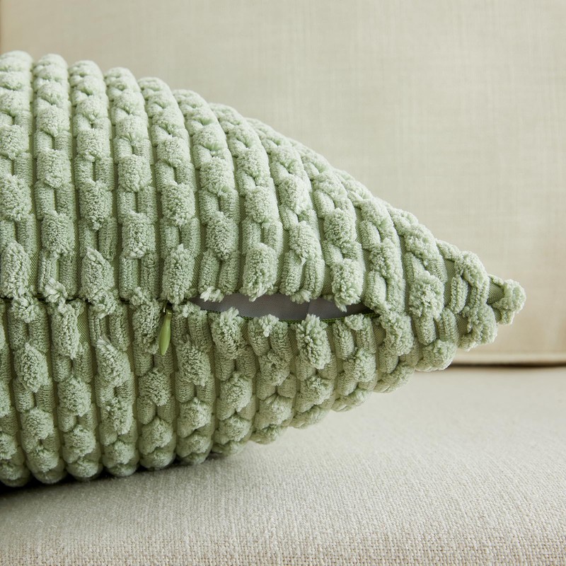 FDTERN Set of 2 45 x 45 cm Pale Green Corduroy Cushion Cover, Fluffy Boho Cushion Covers, Decorative Cushion Cover Sofa Cushion Couch Cushion Decorative Cushion Cover for Sofa Bedroom Living Room