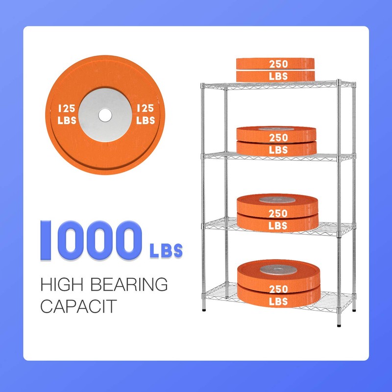 • ✔【Strong Weight Capacity】Without wheels, the weight limit for each shelf is 250 pounds and the total weight limit for the entire shelf is 1000 pounds.