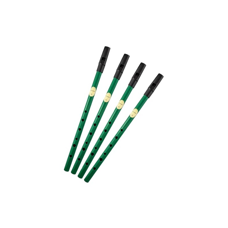 Feadog Set of 4 Brass Traditional Irish Whistle in the Key of D Made in Ireland Musical Instrument Present (Green Key D)