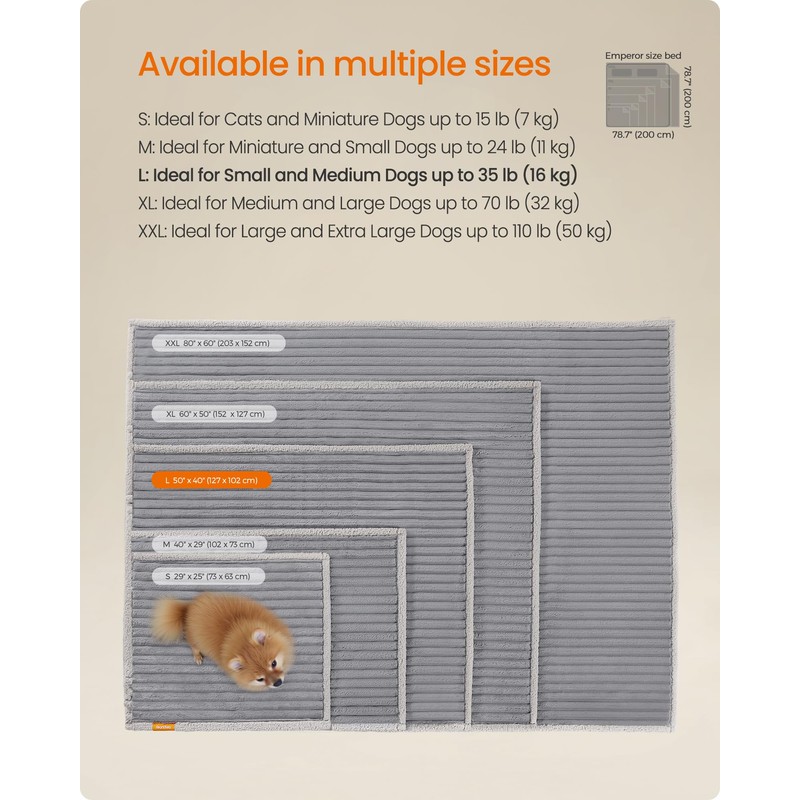 Feandrea Waterproof Dog Blanket, L, 127 x 102 cm, Pet Blanket for Small and Medium Dogs, Machine Washable, Reversible Dog Couch Cover Protector, Dove Gray and Light Gray UPPB035G01