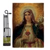 Feast of The Immaculate Heart of Mary Burlap Flag Stand Kit Burlap Wall Hanging Decor Home Porch Religious Canvas Room Tapestry Faith Cemetery Decorations for Grave Yard Sign Catholic Gift