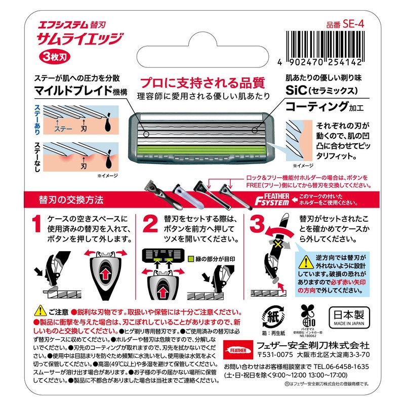 FEATHER F-System Samurai Edge Replacement Blades, 4 Pieces