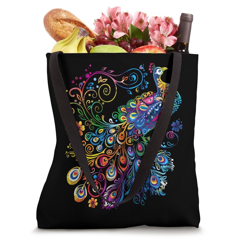 Feather Peacock Lover Artwork Animal Colorful Peacock Bird Tote Bag