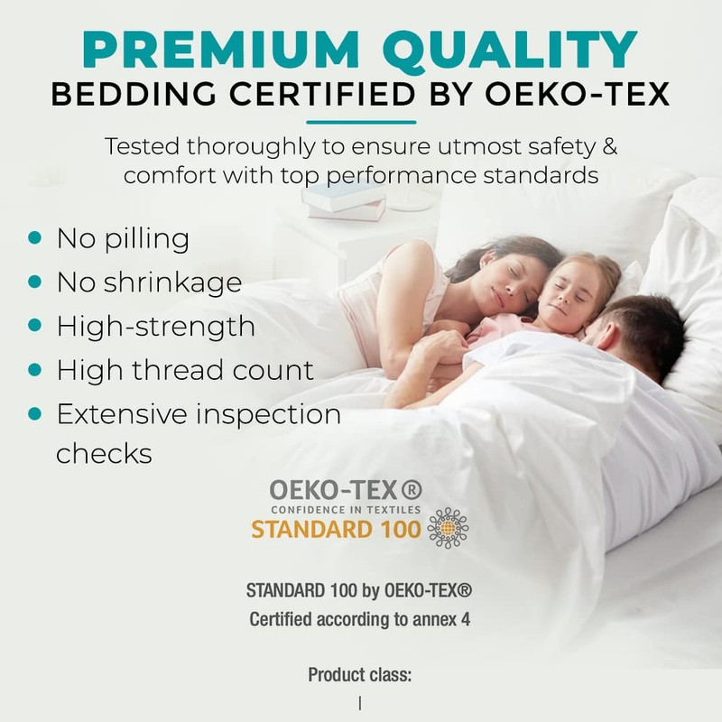 - Certificado estándar de la mejor calidad por OEKO-TEX: nuestra sábana bajera de alta calidad se prueba a fondo para garantizar la máxima seguridad y comodidad. Cada centímetro de nuestra tela cumple con los estándares de rendimiento más altos para hacer bolitas, encogimiento, resistencia y alto número de hilos. Los controles exhaustivos de inspección de productos y las auditorías continuas de fábrica garantizan la sostenibilidad. Cada pieza de sábana bajera se mide individualmente y se cose a la perfección.