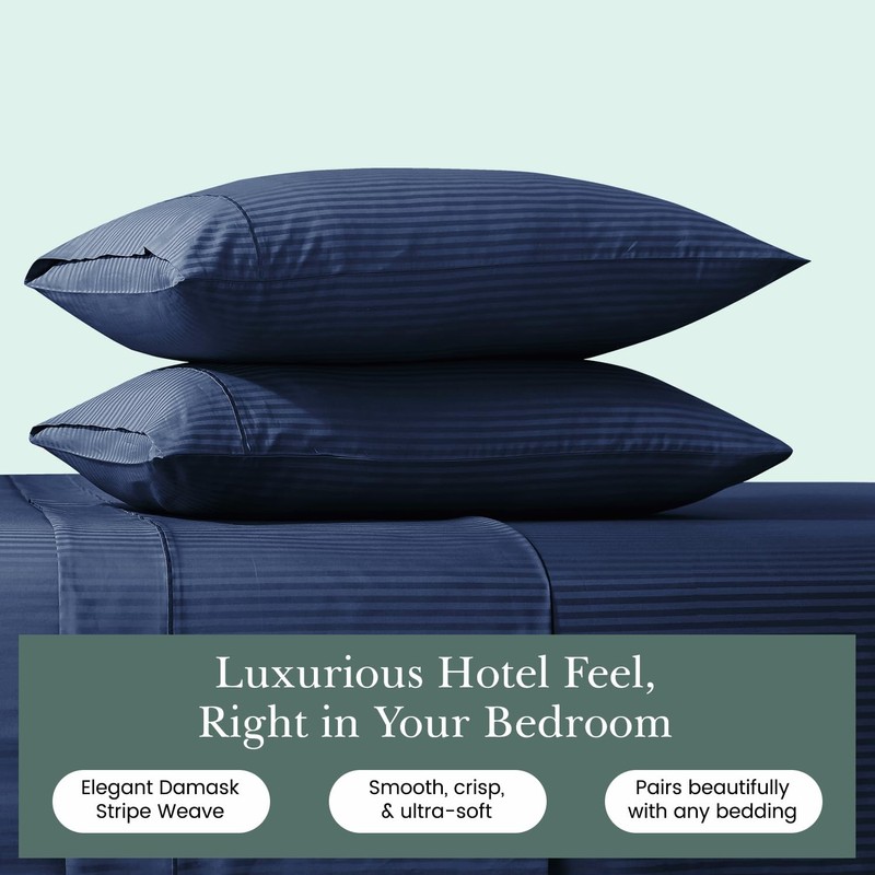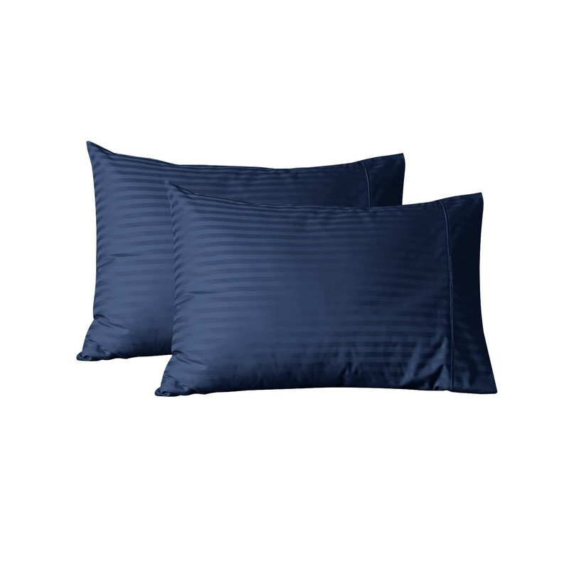 Feather & Stitch Pillow Covers Set of 2, Envelope Closure Standard Size Pillowcases, Soft Luxury 500TC Damask Stripe Sateen Weave Pillow Case, 20x30 Inches - Dark Blue