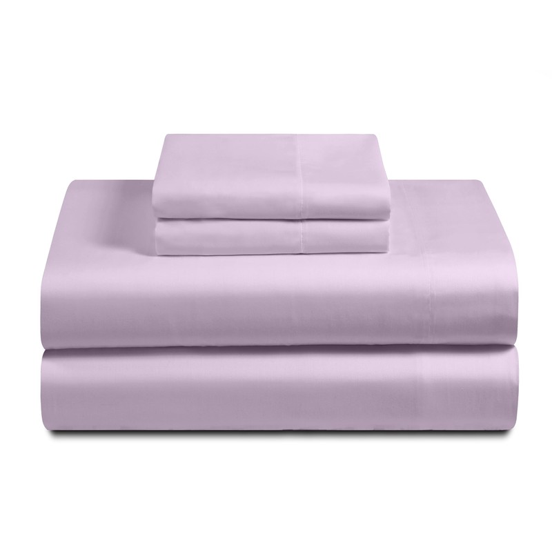 Feather & Stitch Softest 100% Cotton Sheets, 300 Thread Count Percale Weave Bedding, 16" Deep Pocket, Cooling Sheets, Breathable Bed Set, Hotel Premium Quality (Full, Lavender)