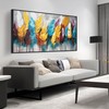 Feather Wall Art for Living Room, Yellow Green Red Canvas Wall-Decor for Bedroom, Large Size 59x29 Inches Hand-Painted Framed